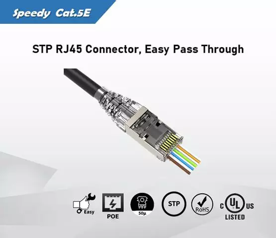 UL Listed Speedy Cat.5E STP Pass Through RJ45 Connector
