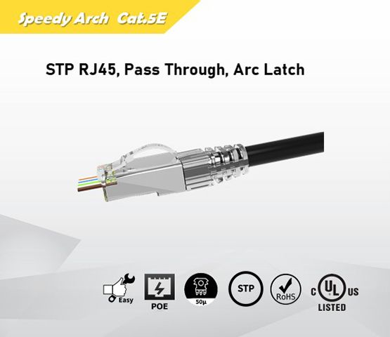 UL Listed Speedy Arch Cat.5E STP Pass Through RJ45 Connector