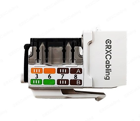 Cat6 keystone 180 degrees keystone jack with a unique color marking system can properly manage the equipment for various purposes. The sturdy keystone jack cat6 is easy to punch and supports T568A and T568B wiring with 110 type termination for 22 to 24AWG sold Ethernet cable. The gold-plated contacts of UTP cat6 keystone ensure a secured and non-corrosive connection in structured cabling. The UTP Cat6 jack can be used to wire your home and office, and compatible with surface mount boxes, or wall plates with standard networking ports. The Category 6 rated performance is up to Gigabit Ethernet speed and complies with ANSI/TIA 568.2-D standard, which can realize fast and reliable networks. CRXCabling offers user-centric cabling advice on communication systems and enables users to operate and use the network device smoothly and create a more comfortable and convenient network environment. Contact us to make network assets arrangement easier now!