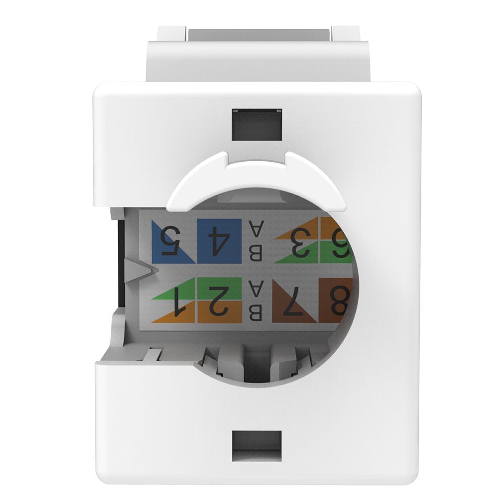The Cat.6 keystone jack with pointed wire IDC can quickly and easily separate the twisted pair and accepts 23 to 26 AWG solid Ethernet cables with 110 type terminations. The small-size Ethernet wall jack is most suitable for 3-port and 6-port high-density wall plates. The printed labels comply with T568A and T568B wiring standards.