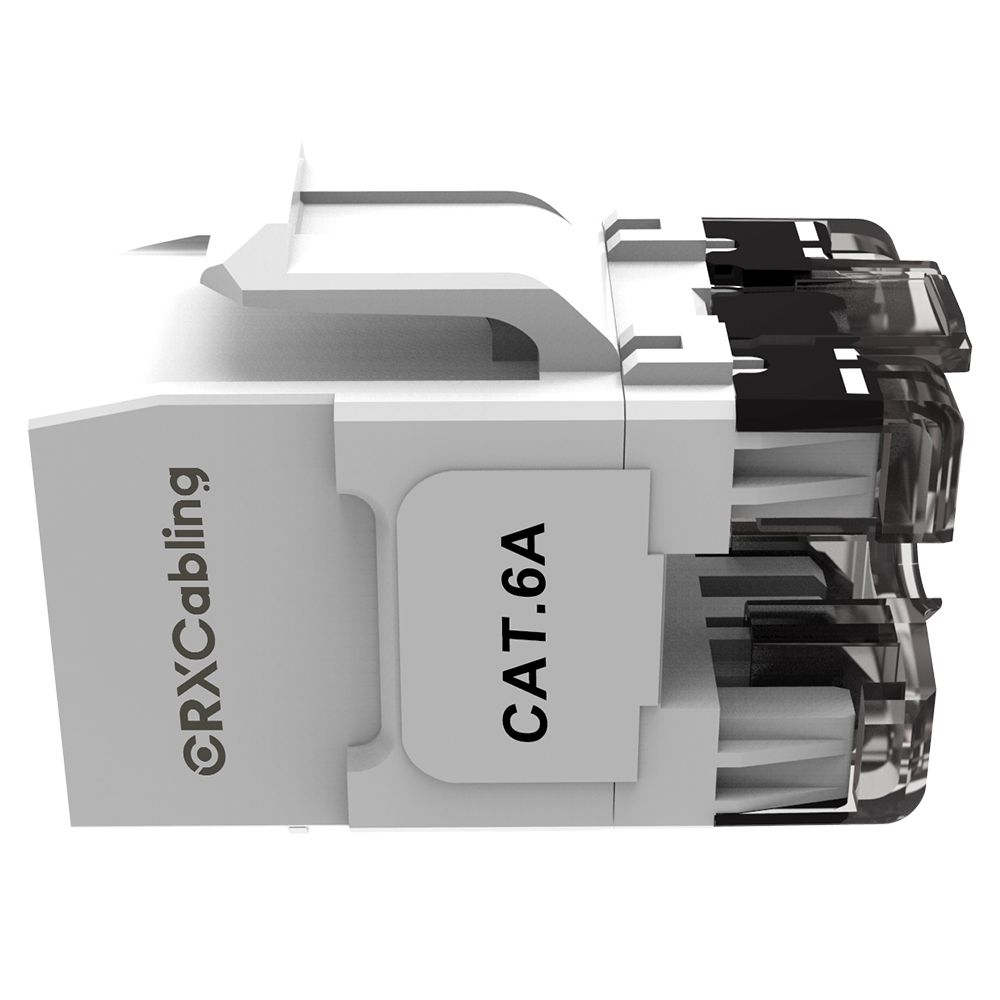 CRXCabling Cat.6A keystone jack implements color management through service identification and color-coding. The RJ45 Cat6 with a universal T568-A or T568-B label accepts 22 to 24AWG solid cables, and compatible with the 110 punch-down tools.