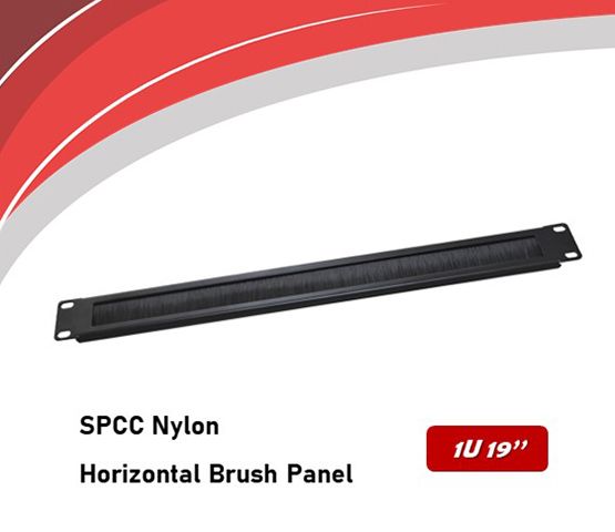 1U 19 Inch Horizontal Brush Panel in Black Color
