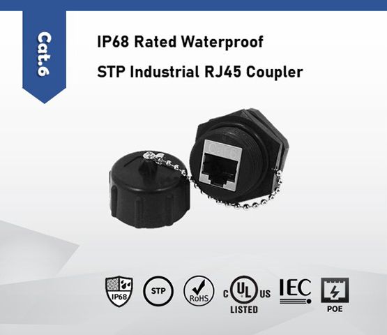 In harsh outdoor environments, the highest level IP68 rated waterproof Industrial RJ45 Coupler is your ideal solution. Cat.6 STP 110 type RJ45 coupler featured in bulkhead design for last on the panel to create a watertight seal. Also it is consisted of 50 micron gold plated contact pins, included dust cap protects the shielded RJ45 jack from dust, debris and moisture when not in use.