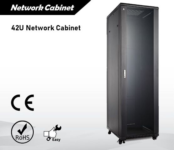 The 42U network rack has a solid mesh and a ventilated door, which can provide sufficient airflow in the cabling. The top can also be detached to lay cables; the vertical rail with ease can be adjusted according to different needs with a loading capacity 800KG.