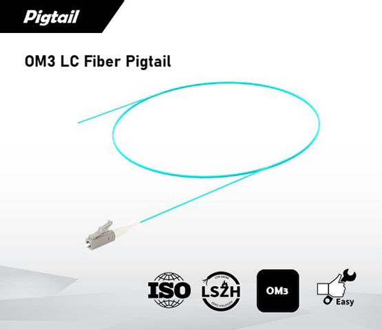 OM3 multimode fiber pigtails achieve precise installation that creates a set of connections to end devices. The LC OM3 fiber connector is space-saving for cabling that meets high-density patch applications. The connector meets TIA/EIA-568-B.3 standards and brings fiber optic cable termination to the best performance.