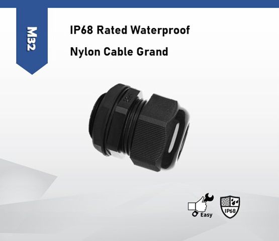 검은색 IP68 등급 M32 방수 나일론 케이블 글랜드.