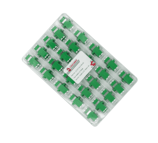 LC双工带法兰单模APC光纤适配器耦合器非常适合任何单模应用,并且可以连接到任何 LC 跳线。氧化锆陶瓷套管在光纤通信中提供更准确的传输、更低的插入损耗和更高的回波损耗。
